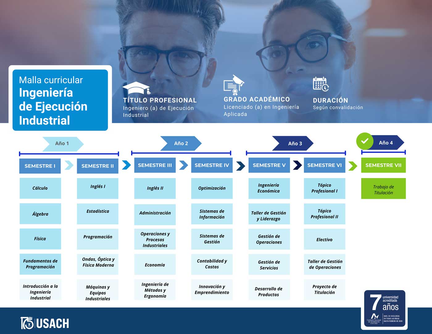 Como Ingeniero/a en Ejecución Industrial de la Universidad de Santiago de Chile abordarás problemas de gestión e implementación de operaciones en empresas de producción de bienes y servicios, trabajando en equipo y demostrando un compromiso ético con las personas y el medioambiente.
